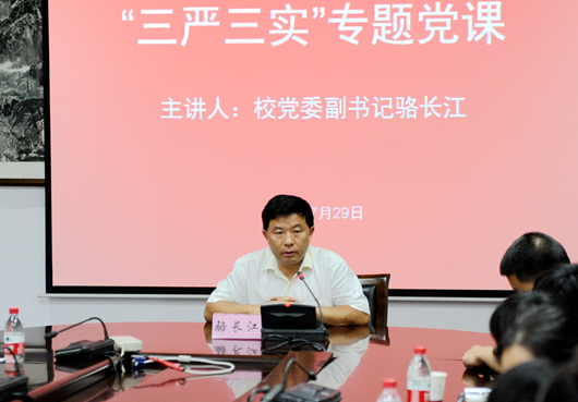 校党委副书记骆长江为党办和宣传部全体党员上“三严三实”专题党课