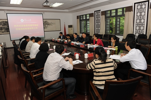 贵大新闻网讯(记者 杨波)6月12日,以省政协经济委员会副主任,省经信委原正厅级纪检员曹国民为组长的省委党建领导小组第十一考核组到mg4355官网,就校党委申报2013年度全省先进党委及材料与冶金学院党委申报省级“五好”基层党组织进行考核调研。 当日上午,调研座谈会在北校区第一会议室召开。考核组全体成员,省委教育工委副书记李涛,校党委书记姚小泉、党委副书记任钢建出席会