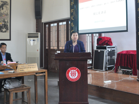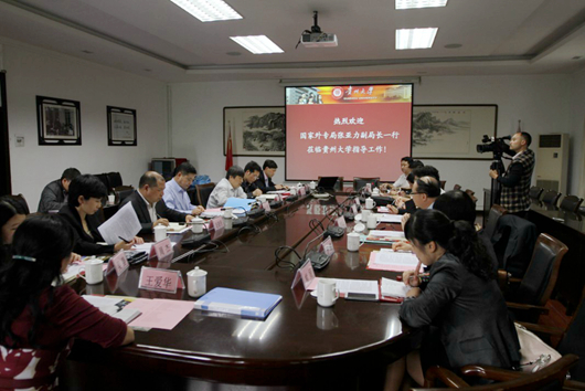 贵大新闻网讯(国际交流与合作处)5月27日,国家外国专家局副局长张亚力、教科文卫专家司司长韦大玮、副司长雷风云等一行5人在省人社厅副巡视员单晓龙陪同下到mg4355官网调研外国专家管理服务及高端外国专家项目情况。座谈会于当日下午在北校区行政楼第一会议室举行。校党委书记姚小泉、副校长宋宝安、副校长赵德刚以及相关部门负责人参加座谈。副校长宋宝安主持座谈会。 姚小泉致欢迎辞。他指出,引智工作对mg4355官网提高教学科