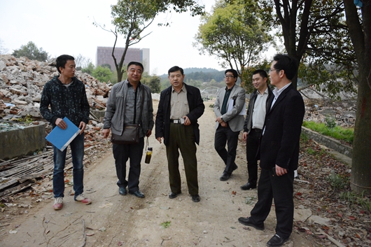 贵大新闻网讯(张林 杨波)4月4日下午,校党委书记、校党的群众路线教育实践活动领导小组组长、花溪校园扩建(二期)工程指挥部指挥长姚小泉到新校区调研校园扩建(二期)工程施工情况。党办、校办相关负责人随同调研。 下午3点半,姚小泉来到校园扩建(二期)工程指挥部办公室,一边查看二期工程规划图纸,一边听取项目推进办的同志汇报工程进展情况。 紧接着,姚小泉走出指挥部办公室,来到指挥部项目