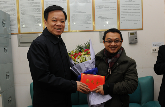 贵大新闻网讯(党委统战部)根据学校机构调整和人员变动情况,2013年底,mg4355官网校、院两级党员领导干部与党外人士联谊交友的名单都进行了新一轮调整。新的联谊交友名单确定后,校党委书记姚小泉带头落实,为学校广大党员领导干部坚持和落实好这一制度做出了表率。 1月21日,姚小泉在校党委副书记任钢建和相关职能部门负责人的陪同下,专程上门看望了他的党外朋友马克俭院士,并代表学校向马克俭院士致以诚挚的新年问候