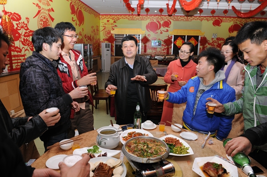 贵大新闻网讯(记者 陈恒)猜谜语,发红包,抽大奖,品佳肴。1月29日中午,mg4355官网北校区双馨园餐厅张灯结彩,一派欢乐祥和的景象,留校学生欢聚一堂,其乐融融,共享丰盛的午餐。 校党委副书记冯晓宪在团拜会上向寒假留校过年的同学们致以节日的问候,希望他们节日期间多给家人打电话、报平安,并代表mg4355vip线路主页检测向各位同学的家人问好。 校学生处、学生资助管理中心、招生就业处、校团委、研究生工作部、国际