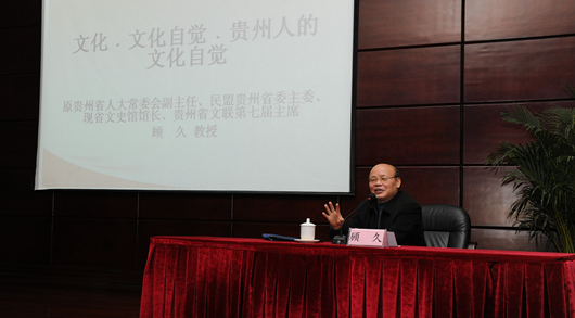 新闻网讯(记者 王晓春)12月11日,顾久教授在mg4355vip线路主页检测北校区行政楼报告厅为mg4355官网辅导员举办了一次别开生面的“文化、文化自觉、贵州人的文化自觉”讲座。 顾久教授说,文化是一个很大的范畴。他以马林特洛夫斯基未完成的书稿为出发点引出文化的概念,并询问在场辅导员“为什么绝大多数的动物以及人都是两性繁殖的?”随即,以一种诙谐幽默的方式向大家回答了这个问题,他说:“子女都是对于父母的创新。”他从原始人、