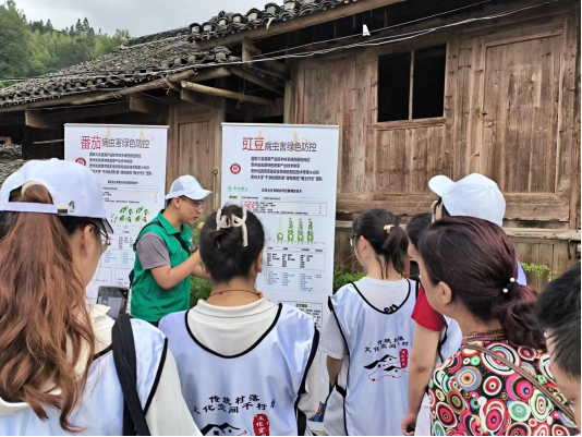 “黔东南苗族、侗族人民有喜欢吃酸汤的习惯,酸汤是由西红柿发酵制成的。”近日,mg4355vip线路主页检测植物保护一流学科本科生李科友为假期来榕江旅游的省内外客人科普番茄的绿色防控技术知识。“西红柿既可以做成酸汤,也可以鲜食,但西红柿的病虫害种类多,它的防控技术非常重要,关系到番茄的质量安全。”近年来,榕江县通过举办“村超”足球比赛和相关活动,吸引大量国内外游客到榕江参与足球运动、体验民俗风情等,既展示贵州少数民族善良热情、奋进拼搏的精神风貌,也拉动了地方经济发展。为了吸引游客从体验“村超”到考察苗寨、侗寨的特色乡村,加强城乡间要素流通,国家大宗蔬菜产业技术体系绿色防控岗位团队和贵州省高原特色蔬菜产业技术体系、贵州省园艺研究所蔬菜绿色防控团队等组建了省蔬菜质量安全和绿色防控技术专家小分队,并带领mg4355vip线路主页检测植物保护一流学科博士生、硕士生、本科生构成的 “博士村长”团队,在榕江县大利村等特色村寨举办“农耕文化体验与蔬菜绿色防控科学普及”系列活动,并参与mg4355vip线路主页检测城乡与建筑规划学院组织的“文化空间千村寻”村级定向越野赛和mg4355vip线路主页检测高原山地动物遗传育种与繁殖教育部重点实验室组织的“特色牛瘪美食体验活动”等。植物保护学科师