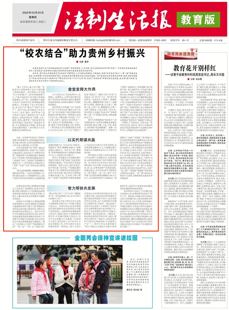如果说农特产品产销对路进高校是“主旋律”,那科技帮扶、人才培养、智力支持等就是多声部“和弦”。只有通过多渠道的通力协作,“校农结合”这首唱响乡村振兴的田间交响曲才能演奏得更加壮丽多彩。近年来,贵州省全力推进落实“校农结合”消费帮扶、人才培养品牌建设、产教融合,探索“校农结合”融入“一带一路”战略有效路径,加快构建“大校农结合格局”模式,形成富有贵州教育特点的乡村振兴道路。贵州各高校充分发挥自身优势,推出“2+2双保模式”“学校+合作社+农户+购销平台”“博士村长计划”“十百千行动”等,实现了“校农结合”新模式的完美破题,真正将“贵州实践”这篇学术论文书写于贵州广袤的田间大地上。食堂发挥大作用“量小不好卖,量大卖不脱。”这是贵州大多数农特产品在产销问题上面临的痛点。贵州财经大学采取“2+2双保模式”,即对种植规模不大、产量不高的农产品采取订单保底收购模式,对于有一定规模和产量较大的农产品则采用订单保障按需收购模式,不仅解决了农户的后顾之忧,还让农户从“敢生产”转向“乐生产”。2017年起,贵州财经大学先后与台江、余庆、惠水、剑河等18个县市的农户或生产基地签订农产品供销协议,采购品类包含