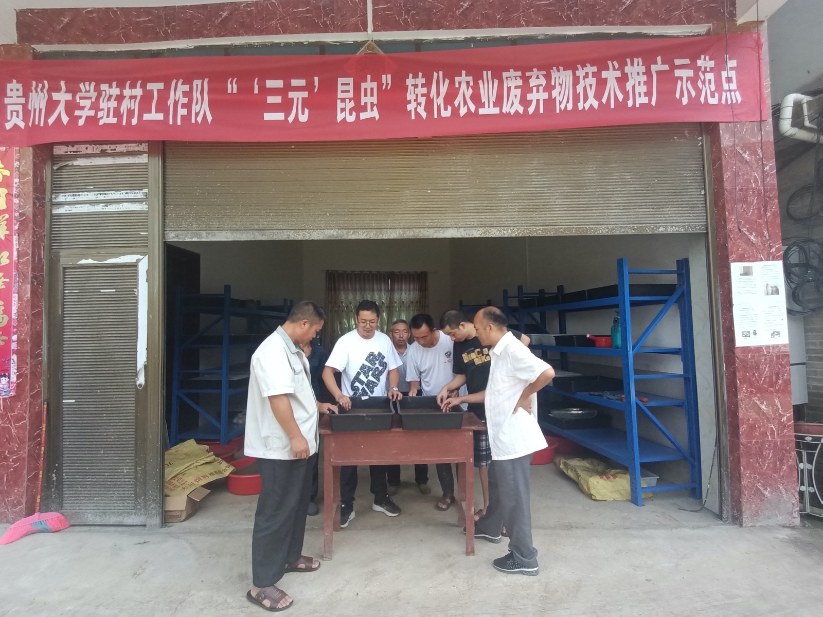 “‘蟲’产业,是我们村围绕‘三元’昆虫养殖开展的特色产业项目。mg4355vip线路主页检测驻村工作队以营盘村为试点,建立‘三元’昆虫转化农业废弃物产业推广示范点,即以蛴螬和黄粉虫转化畜禽粪便和秸秆为虫体蛋白,随后将虫体蛋白做成饲料,用于土元养殖,土元由公司收购,促进增收和人居环境改善,让我们村富起来。”7月21日,贞丰县平街乡营盘村驻村第一书记郑寅向到访村民介绍村里“蟲”经济发展情况。据了解,2021年7月,郑寅带领村级驻村工作队建立“蛴螬-粪-鸡”生态循环微鸡场1个,于年底获纯利1万2千元,支持村内建设。但由于前期投入大、养殖成本高、市场不稳定等因素,村民认可度、参与度不高。为此,基于前期的蛴螬和黄粉虫转化农业废弃物技术,郑寅提出“蛴螬-黄粉虫-土元”转化农业废弃物综合产业技术,并与“南阳市卧龙区富民土元养殖专业合作社”签订土元收购协议,为村级“蟲”产业再添活力和信心。今年1月,郑寅到访西牛洞组李付伦户,帮助其制定2022年鸡养殖计划,但李付伦说道:“书记,知道你是为我们好,但是虫子养鸡真的不行,虫子不能完全替代饲料,养殖成本高、土鸡市场也不稳定,15天卖不出就没有赚头。”为此,郑寅开始为村里谋划新的产