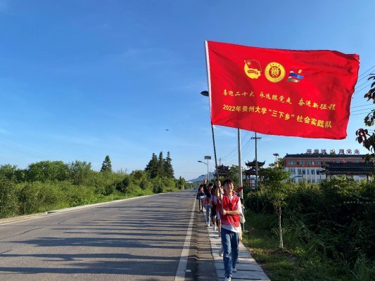 “社会实践是广大青年学子扎根祖国大地了解国情民情乡情的重要组成形式,目标是引导学生在社会课堂中‘受教育、长才干、作贡献’。”旅游与文化产业学院党委书记王迪在学院暑期“三下乡”实践活动出征仪式上说道。当前,mg4355vip线路主页检测2022年暑期“三下乡”社会实践活动正如火如荼进行中,各学院师生积极参与,深入贵州省各地开展宣讲、支教、调研等实践活动。法学院“三下乡”暑期社会实践队走进丹寨县烧茶村为烧茶村小学的同学们开展普法小课堂,进行普法宣讲,向同学们发放了《未成年人保护法》宣传手册,带领同学们来到户外开展素质拓展活动,实践队队员们还特别准备了《秘密花园》图册,引导同学们为图册着色,以此达到释放压力的效果。实践队还对烧茶村村民进行实地走访,进入当地村民家中进行采访调研。“入户采访时,我们给当地乡亲赠送印有贵大法学院logo的水杯,大姐收到‘礼物’后,露出了灿烂的笑容。当地人非常热情好客,在看到实践队成员们顶着烈日进行走访时,提着4瓶冰水追着给我们,遇到的当地少数民族老人,即使交流比较困难,但依然不停地劝说我们留下来吃饭。”实践队成员谭璐说。旅游与文化产业学院共有10支团队90余名师生奔赴黔西南州贞丰县、黔
