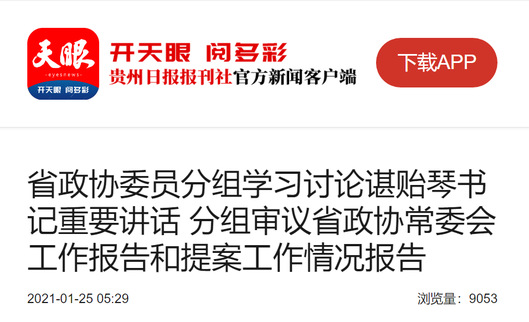 委员们纷纷表示,谌贻琴书记的讲话通篇贯穿习近平新时代中国特色社会主义思想,高屋建瓴、统揽全局、催人奋进,为全省各级政协组织和政协委员做好下一步工作指明了方向、提供了遵循。陈康委员认为,讲话贯穿了新思想,诠释了新担当,体现了新部署,明确了新要求,聆听讲话倍感振奋、倍添动力。李自良委员认为,讲话用“四个重大胜利”总结2020年工作成绩,感同身受,作为一名新“贵漂”深感荣幸。李建军委员表示,将奋力响应讲话中提出的推进“人才大汇聚”号召,以人才驱动创新,引培并举,服务好贵州经济社会发展。耿文福委员说,讲话是确保今年开好局、起好步的科学指引,要认真学习、深刻领会,不折不扣地贯彻落实到工作当中。