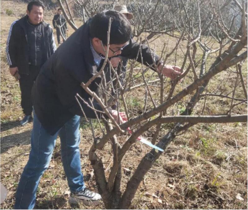 调研过程中,博士团实地查看了惠水县福隆现代生态农业发展有限公司的果林地理环境、生态环境以及贵州柳亥林蜂业有限责任公司的养蜂地理环境、生态环境。前期通过电话了解,针对种植樱桃树和养蜂过程中出现的技术及其饲养管理问题,发挥畜牧兽医与植物学专业联合优势。博士团成员仇志浪从学校带来修枝剪,耐心细致指导果农如何给玛瑙红樱桃修剪、施肥,如何防治早期落叶病等技术,为樱桃的丰产优质打牢基础,并向他们赠送贵州省精品水果技术培训之樱桃提质增效栽培技术一套。畜牧兽医专业的同学进行相关文献查阅,纷纷提出林下养殖模式,并对其进行探索。同时采用生物除草技术,以减少除草剂的使用和人工除草工作成本。林下养殖动物采食林下病虫害或虫卵等,达到樱桃林病虫害的生物防治作用,减少农药对环境污染,还可节省物力、财力和人力。团队一行针对目前柳亥林蜂业基地的现状一起探讨解决办法,解决养殖场选址、花源蜜源跟踪判断、蜜蜂防寒防病防虫防疫、出蜜时间、蜂蜜质量把控等一系列问题