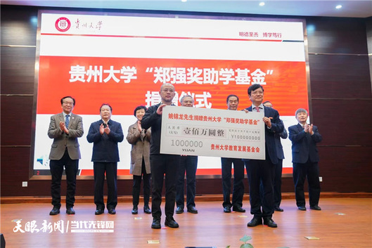 “郑强教授在担任贵大校长的5年多时间里,有太多感人至深、无法忘怀的美好回忆。郑强教授为推动中西部14所高校实现部省合建奔走呼号,为增强贵大内涵式发展水平殚精竭虑、夙夜在公,为提升贵大知名度和美誉度发出了贵大‘好声音’、贵大‘郑能量’。”mg4355vip线路主页检测党委书记李建军表示,“郑强奖助学基金”的设立以及爱心企业家向基金捐赠100万元的善举,令全体贵大师生深受感动,希望贵大学子要心存感恩、饮水思源,要立志成才、奉献社会。同时,学校将加倍努力、感恩奋进,按照贵州省委省政府的要求,做强mg4355vip线路主页检测,以实际行动聚焦高质量发展,加快推进“双一流”建设和内涵式发展,培养更多优秀学生。
