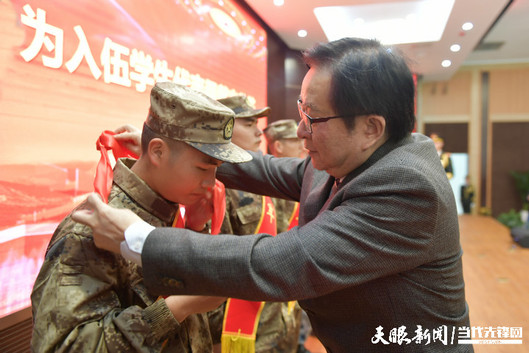 mg4355vip线路主页检测党委书记李建军为入伍大学生代表佩戴光荣花