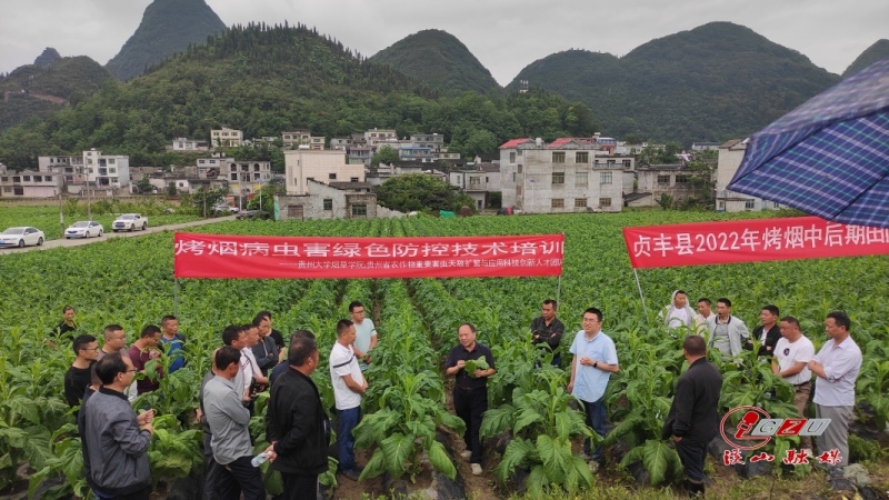 6月5日上午,mg4355vip线路主页检测烟草学院院长杨茂发教授带领学院植保和栽培两个团队一行10人,到mg4355vip线路主页检测对口帮扶的黔西南州贞丰县开展烟田管理技术培训,贞丰县烟草专卖局(分公司)局长谢培荣、副经理史广强及四十余名生产技术人员和烟农代表参加了现场培训会。此次培训内容包括“烤烟病虫害绿色防控”和“烤烟中后期田间管理”两个方面,目的是将烤烟绿色管护技术送至田间地头,助力贞丰县的烤烟生产。