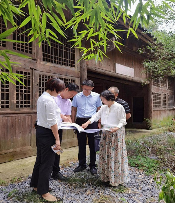 余压芳(右一)团队到大方县油杉村传统村落开展技术帮扶