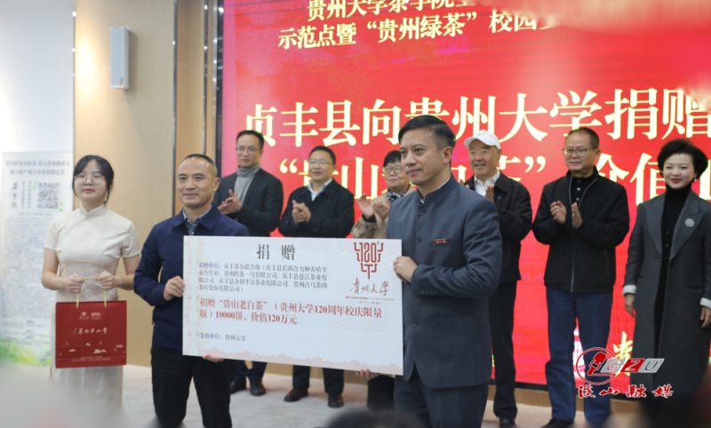 仪式上,贞丰县向mg4355vip线路主页检测捐赠一万饼“贵山老白茶”,价值120万元。贞丰县、长田镇、贵州省普安红茶业集团有限公司、贵州北极熊集团、贵州嘿久茶业有限公司、贵州绿安澜茶业有限责任公司等企业向茶学院、美术学院捐赠价值近38万元的茶叶等物资。此举源于2016年贵州省开展省属院校帮百村精准扶贫行动以来,mg4355官网承担帮扶贞丰县定点帮扶工作任务之时,茶学院、美术学院、文传学院等组团式结对倾情帮扶贞丰县长田镇,通过准确定位、科学规划,有效推进茶产业实现“产加销”一体化发展格局。