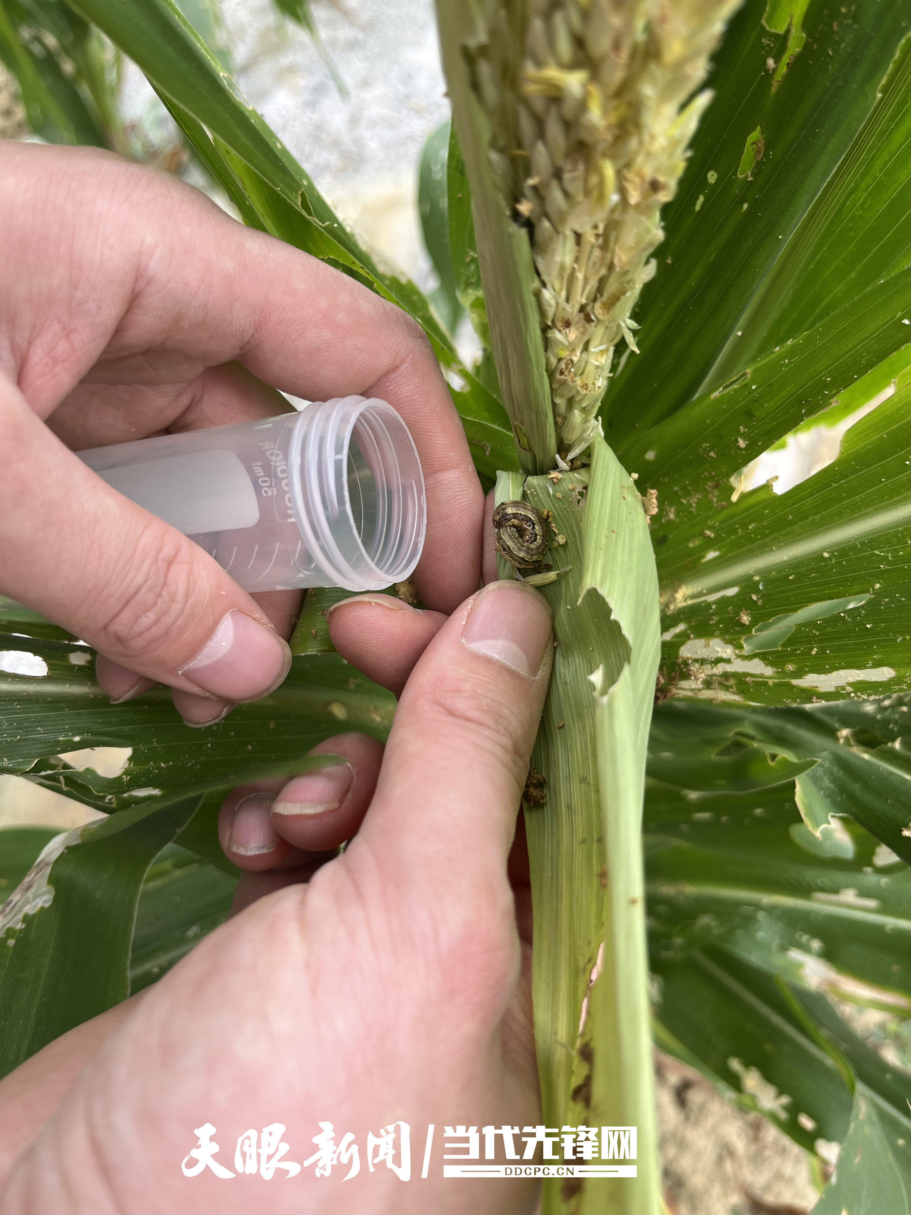此番景象,团队成员李定银早已见怪不怪。“这是我们在罗甸建立的科研基地,种植的玉米没有打任何农药,并且草地贪夜蛾非常喜欢取食玉米,所以该虫数量很多。这个入侵害虫对我国粮食作物构成了巨大的威胁。”李定银说。