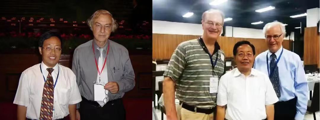 周少奇与诺贝尔奖获得者德国胡贝尔(Huber)教授(左图左二),美国两院院士麦卡蒂(McCarty)教授(右图右一)、美国工程院院士里特曼(Rittmann)教授(右图右三)