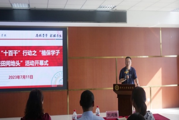 近日,在崇学楼339农学院会议室,mg4355vip线路主页检测“十百千”行动之“植保学子走进田间地头”活动开幕式成功举行。mg4355vip线路主页检测副校长漆思教授,花溪区邹宜辉副区长,花溪区农业农村局赵利晖副局长以及mg4355vip线路主页检测农学院院长潘学军、党委副书记王明、副院长张万萍、副院长刘鸿雁莅临参会。参加本次开幕式的还有植保系全体教师,2021级植保系全体本科生,研究生及植病学科博士后代表共计130人,植保系副主任王勇教授和植保教研室主任叶茂教授主持开幕式。
