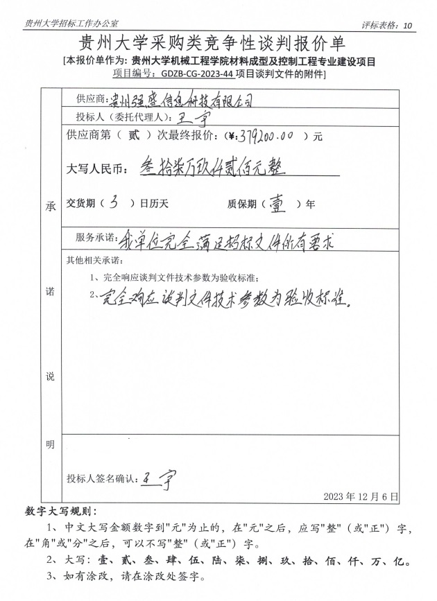 1 | 贵州强盛信息科技有限公司 | 贵州省贵安新区党武镇思雅路7号群升?精彩城A区6#楼(6)1单元6层5号 | mg4355vip线路主页检测机械工程学院材料成型及控制工程专业建设项目,详见《竞争性谈判文件》 | ¥379200.00 |