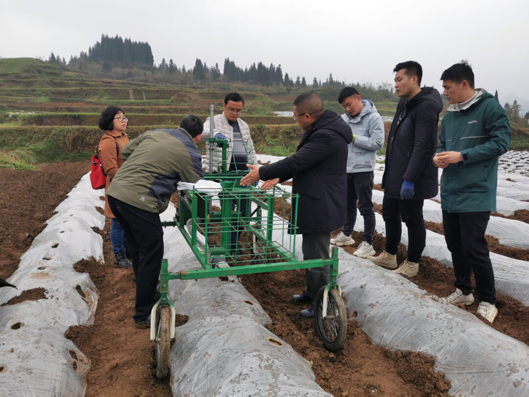 张富贵说:“我们研发的新型山地农机主要是作用在起垄、施肥、覆膜、移栽等生产环节,且大多作用于旱作经济作物。农机在作物的采摘环节也能起到很大作用,能够实现作物的柔性采摘,在不损伤作物表皮结构的同时,大大提高作物的采摘效率。”