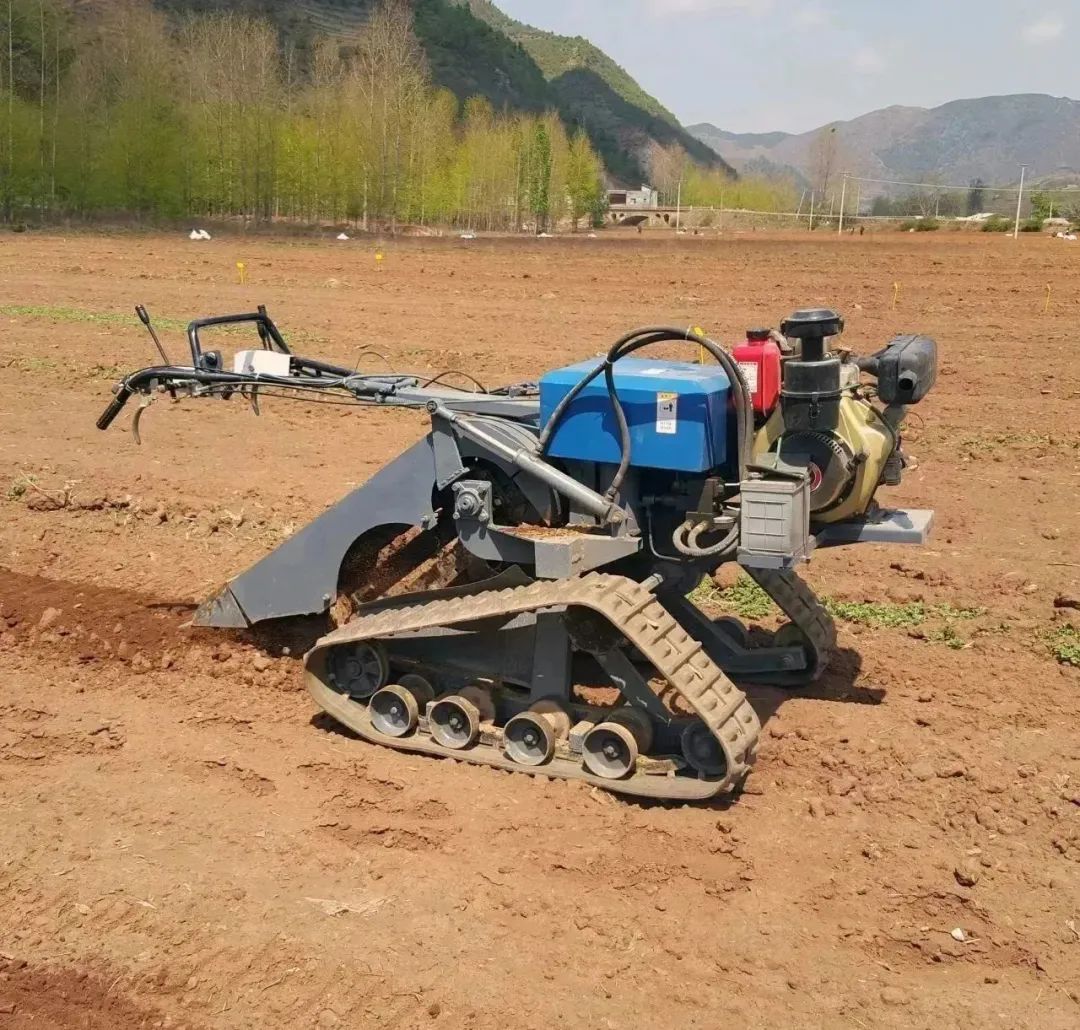 该机设计用于丘陵山区较小地块无法使用拖拉机翻耕的零碎土地,代替传统牛耕。采用9马力单缸风冷柴油机为动力,耕深达到20cm,根据土壤质地,可以实现6级变速,可以实现原地调头。