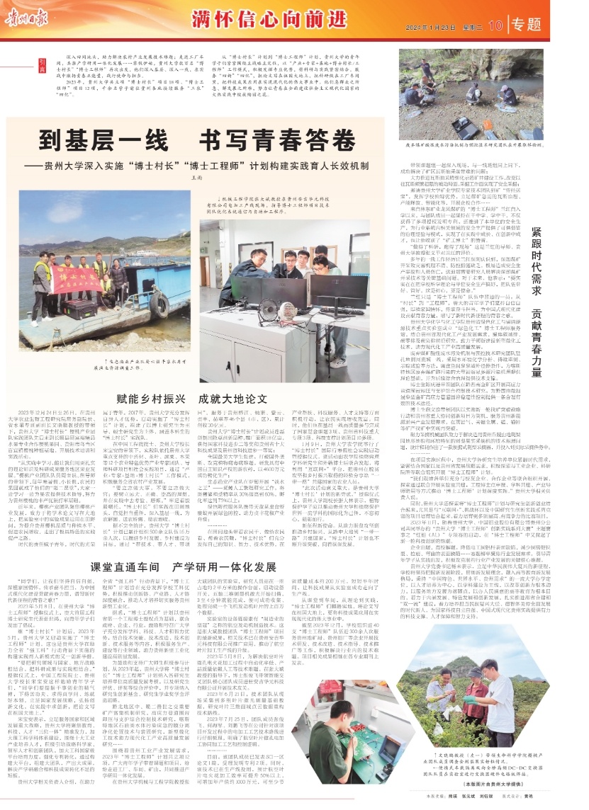 兰红只是“博士工程师”队伍中普通的一员。从“村长”到“工程师”,贵大的青年学子们坚持自信自强,厚植家国情怀,传承奋斗担当,为中国式现代化建设贡献青春力量,谱写了新时代新征程的青春之歌。
