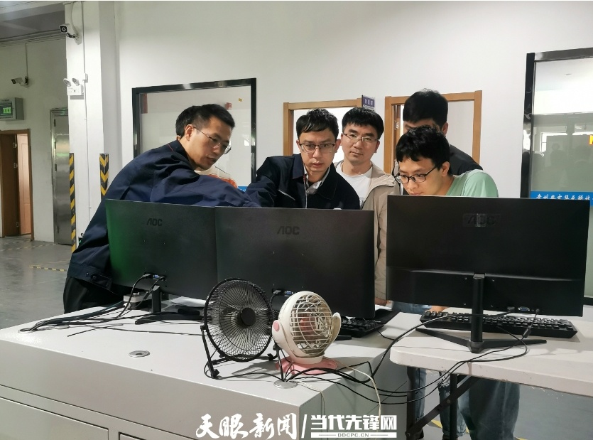机械工程学院张大斌教授在贵州安吉华元科技有限公司电加工产线现场,指导博士工程师项目技术团队优化系统通信与自动加工程序