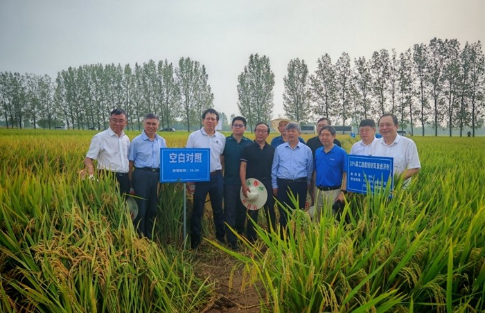 9月8日,由全国农业技术推广服务中心指导,mg4355vip线路主页检测主办,湖北省农业科学院、襄阳市农业技术推广中心、襄阳市襄州区农业技术推广中心联合承办的国家重点研发计划“生态友好无公害杀菌剂和抗病毒剂创制与产业化” 项目田间联合试验观摩评价会在湖北省襄阳市举办。经过评价专家组认定,由mg4355vip线路主页检测创制的具有完全自主知识产权的新型杀菌剂——20%截短侧耳素悬浮剂和20%氯乙酰截短侧耳素悬浮剂,防控水稻细菌性条斑病效果突出,是细菌性病害防控药剂的一次重大突破,建议加快登记,拓展对其他作物的细菌性病害的防控试验。