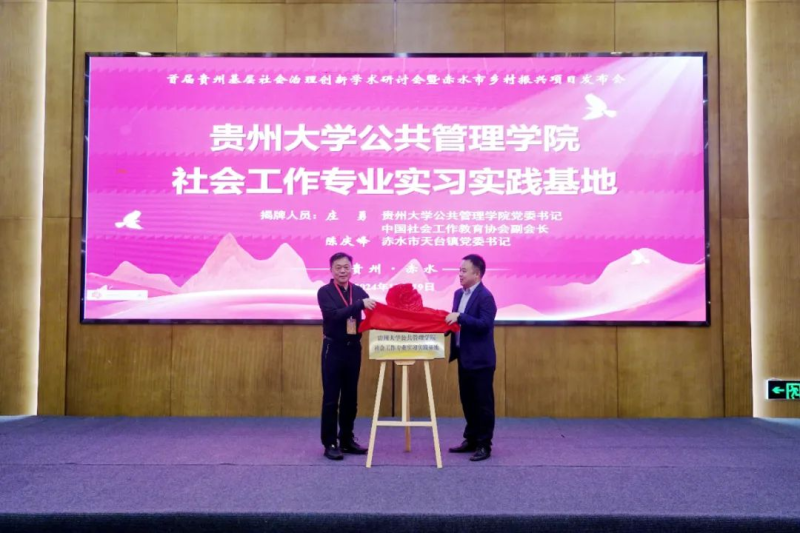 开幕式上,在中国社会科学院原副院长、全国人大社会建设委员会原副主任委员、中国社会科学院学部委员、政法学部主任、中国社会学会学术委员会主任李培林,社会变迁研究会会长、中国社会学会学术委员会副主任、上海大学“伟长学者”特级岗教授李友梅教授,中国社会学会学术委员会副主任、云南大学特聘教授、贵州基层社会治理创新智库特聘研究员谢寿光,中国社会学会副会长、华东师范大学社会发展学院院长文军教授等见证下,贵州省人大社会建设委员会主任委员、中国社会学会副会长、贵州基层社会治理创新高端智库首席专家李建军和中共贵州省委宣传部副部长、省电影局局长黄其松为“mg4355vip线路主页检测基层治理研究院”揭牌。