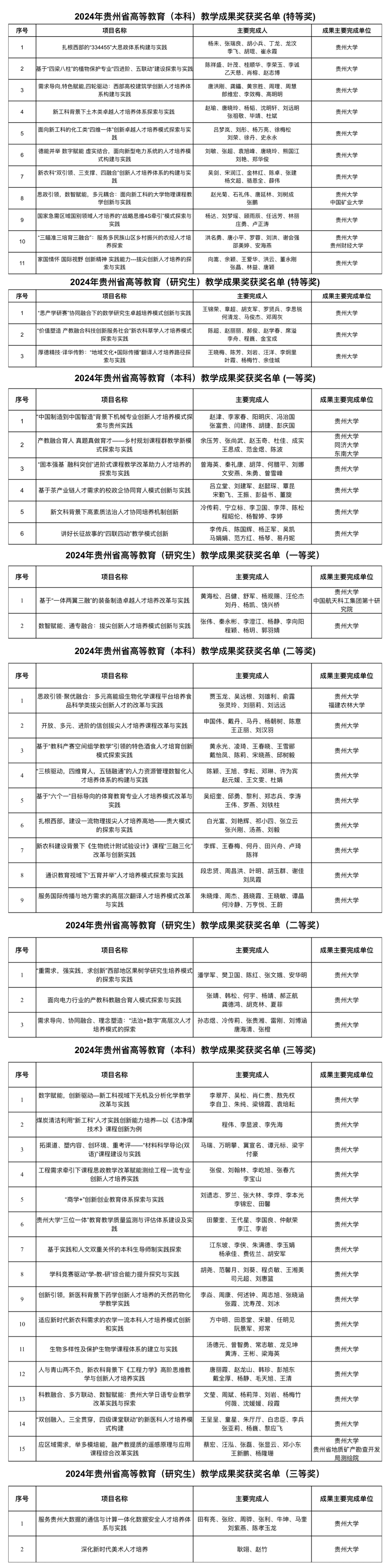 贵大新闻网讯(学生记者 杨贵珠)近日,贵州省教育厅发布了《省教育厅关于公布2024年贵州省高等教育省级教学成果奖获奖名单的通知》,mg4355官网共51项教学成果获奖(其中本科教育41项、研究生教育10项)。
