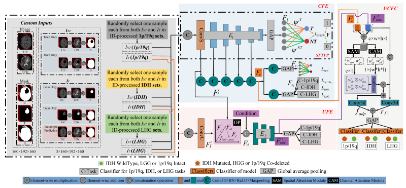 胶质瘤是最常见的原发性脑肿瘤,其精准诊断和个性化治疗对患者预后至关重要。尽管深度学习方法已广泛应用于胶质瘤磁共振图像分类预测,但现有方法仅支持单一分类任务、依赖肿瘤分割,且缺乏可解释的影像标志物。如何同时准确预测胶质瘤的组织学分级和分子亚型,并提供可解释的影像标志物,仍具有重大挑战。