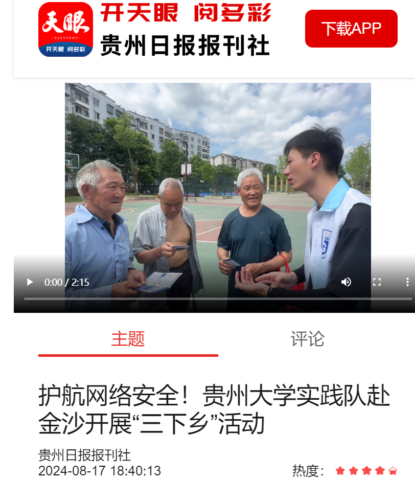 天眼新闻客户端:护航网络安全!mg4355vip线路主页检测实践队赴金沙开展“三下乡”活动