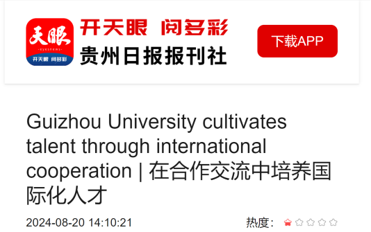天眼新闻客户端:Guizhou University cultivates talent through international cooperation | 在合作交流中培养国际化人才