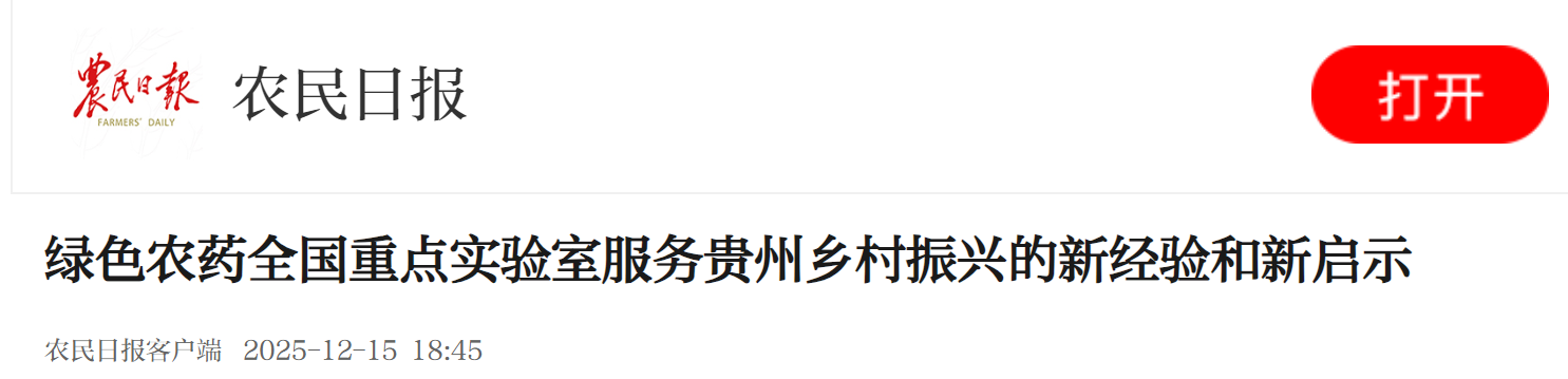 农民日报客户端:绿色农药全国重点实验室服务贵州乡村振兴的新经验和新启示
