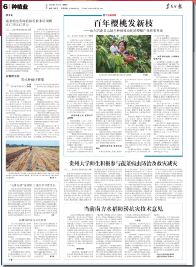 农民日报:mg4355vip线路主页检测师生积极参与蔬菜病虫防治及救灾减灾