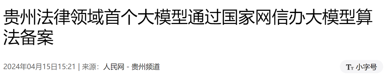 人民网·贵州频道:贵州法律领域首个大模型通过国家网信办大模型算法备案