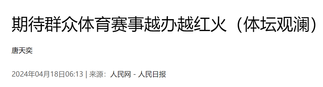 人民网-人民日报:期待群众体育赛事越办越红火(体坛观澜)
