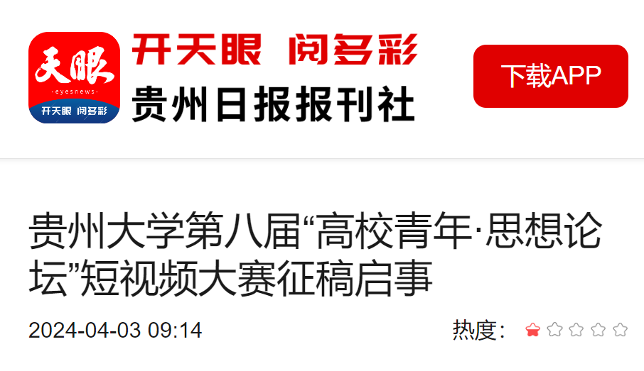 天眼新闻客户端:mg4355vip线路主页检测第八届“高校青年·思想论坛”短视频大赛征稿启事
