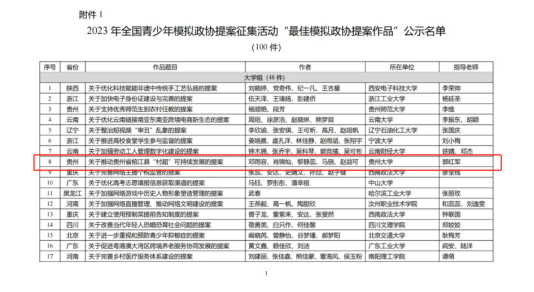 人民网-贵州频道:贵大学生团队作品获全国“最佳模拟政协提案作品”