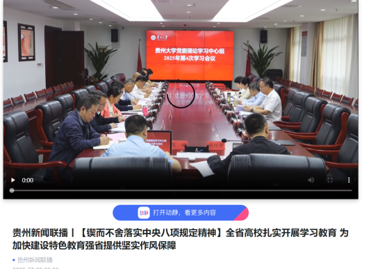 贵州广播电视台《贵州新闻联播》:【锲而不舍落实中央八项规定精神】全省高校扎实开展学习教育 为加快建设特色教育强省提供坚实作风保障