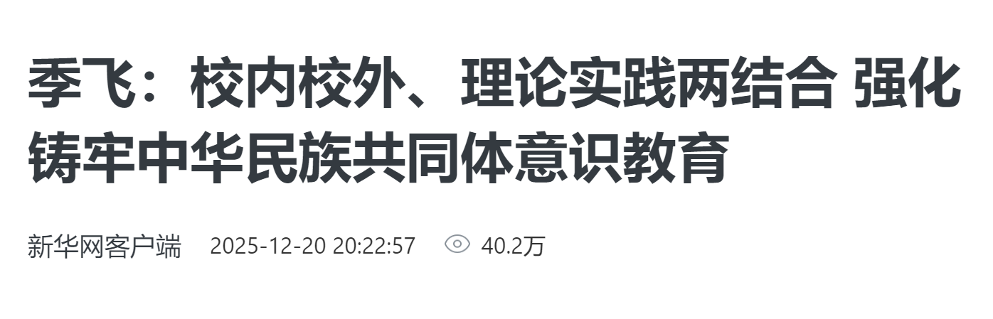 新华网客户端:季飞:校内校外、理论实践两结合 强化铸牢中华民族共同体意识教育