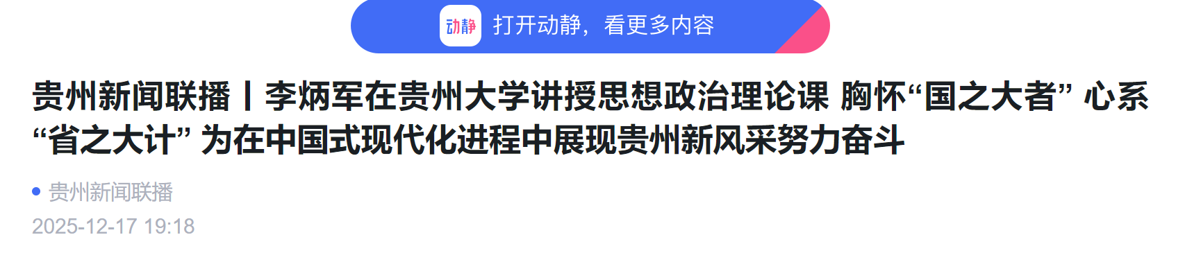 动静新闻客户端:贵州新闻联播丨李炳军在mg4355vip线路主页检测讲授思想政治理论课 胸怀“国之大者” 心系“省之大计” 为在中国式现代化进程中展现贵州新风采努力奋斗