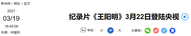 新华网:纪录片《王阳明》3月22日登陆央视