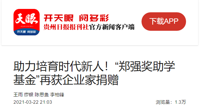 天眼(贵州日报当代融媒体集团新闻客户端):助力培育时代新人!“郑强奖助学基金”再获企业家捐赠