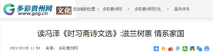 多彩贵州网:读冯泽《时习斋诗文选》:滋兰树蕙 情系家国