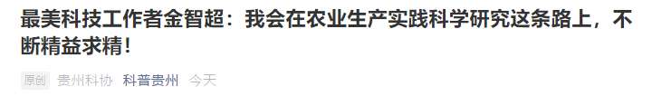 科普贵州:最美科技工作者金智超:我会在农业生产实践科学研究这条路上,不断精益求精!