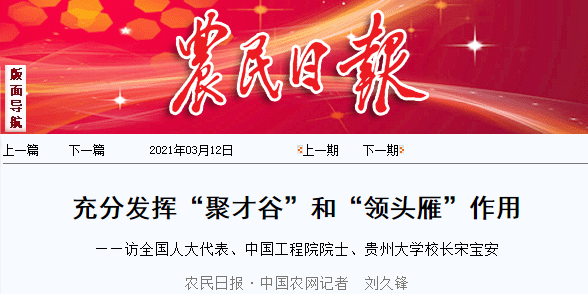 农民日报:充分发挥“聚才谷”和“领头雁”作用——访全国人大代表、中国工程院院士、mg4355vip线路主页检测校长宋宝安