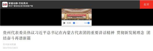 动静(贵州广播电视台官方新闻客户端):贵州代表委员热议习近平总书记在内蒙古代表团的重要讲话精神 贯彻新发展理念 团结奋斗再谱新篇