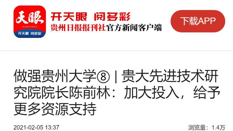 天眼(贵州日报当代融媒体集团新闻客户端):做强mg4355vip线路主页检测⑧ | 贵大先进技术研究院院长陈前林:加大投入,给予更多资源支持