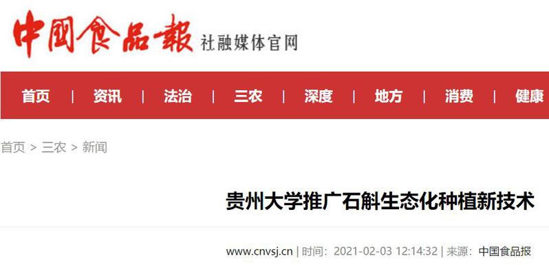 中国食品报:mg4355vip线路主页检测推广石斛生态化种植新技术