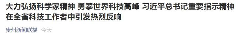 贵州广播电视台(《贵州新闻联播》):大力弘扬科学家精神 勇攀世界科技高峰 习近平总书记重要指示精神在全省科技工作者中引发热烈反响